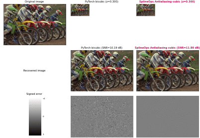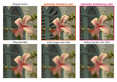 Examples showing the basic functionality of the Spline interpolation module. We also show the equivalence with Resize module methods where relevant.