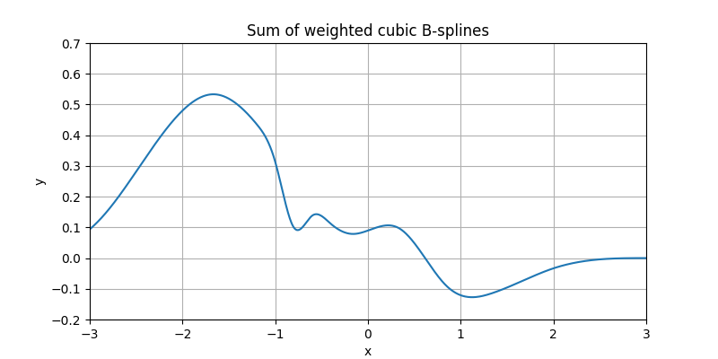 We were able to create some combined function that seems to be kind of arbitrary. This combined function somehow retains the characteristics of B-splines, but it is no more a B-spline (the letter B stands for Basis); instead it is called a spline (without the B).